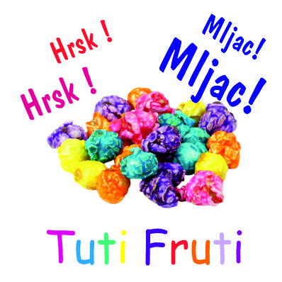 Novost Potražite u našim dućanima nove slasne tuti fruti voćne kokice, uz naše standardno fine čokoladne i karamelne. Grickajte na vlastitu odgovornost, ne odgovaramo za ugrize po prstima .)